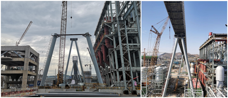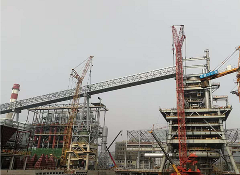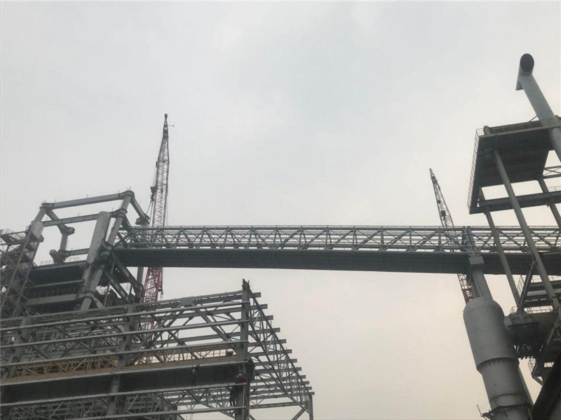 5#通廊在4000噸米塔吊和350噸履帶吊相互合力下,經過近6個小時的吊裝,順利達到68.90米就位高度,按計劃節點提前7天完成高爐主皮帶通廊的整體鋼結構安裝。這是萊鋼1#3800m3高爐本體工程中吊裝高度最高、單體重量最重、跨度最大的鋼結構件,5號通廊成功安裝,為后續設備安裝、通廊封閉、設備單機調試等創造了有利條件,同時給其他各參建單位做了號的榜樣,便于帶動其他工序積極作業施工。