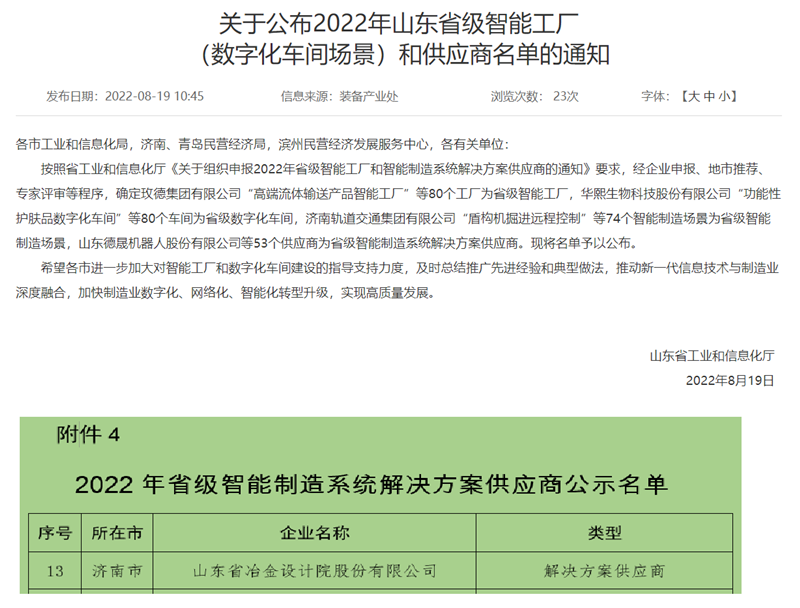 山冶設計入選2022年省級智能制造系統解決方案供應商名單
