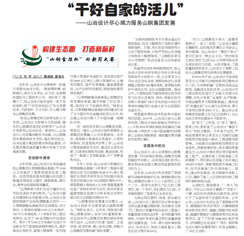 “干好自家的活兒”——山冶設(shè)計盡心竭力服務(wù)山鋼集團發(fā)展
