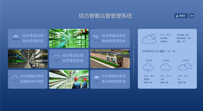 智慧管廊:以“知、控、警、決、管、營、享”為管理方針,以大數(shù)據(jù)、物聯(lián)網(wǎng)、云架構(gòu)、智能組態(tài)、綜合業(yè)務(wù)決策分析、人工智能等技術(shù)為支撐,結(jié)合城市地理信息系統(tǒng)(GIS)和建筑信息模型(BIM),通過整合各數(shù)據(jù)分析,構(gòu)建指揮統(tǒng)一、功能齊全、反應(yīng)靈敏、運轉(zhuǎn)高效的管廊運行綜合管理平臺,包括1個中心、1個平臺、7個應(yīng)用系統(tǒng)、N個終端,對綜合管廊內(nèi)環(huán)境、設(shè)備及運行進行實時監(jiān)控、運營管理和安全預(yù)警,提高決策指揮效率,切實提高處置突發(fā)安全事件的能力,以保障系統(tǒng)安全、高效運行。